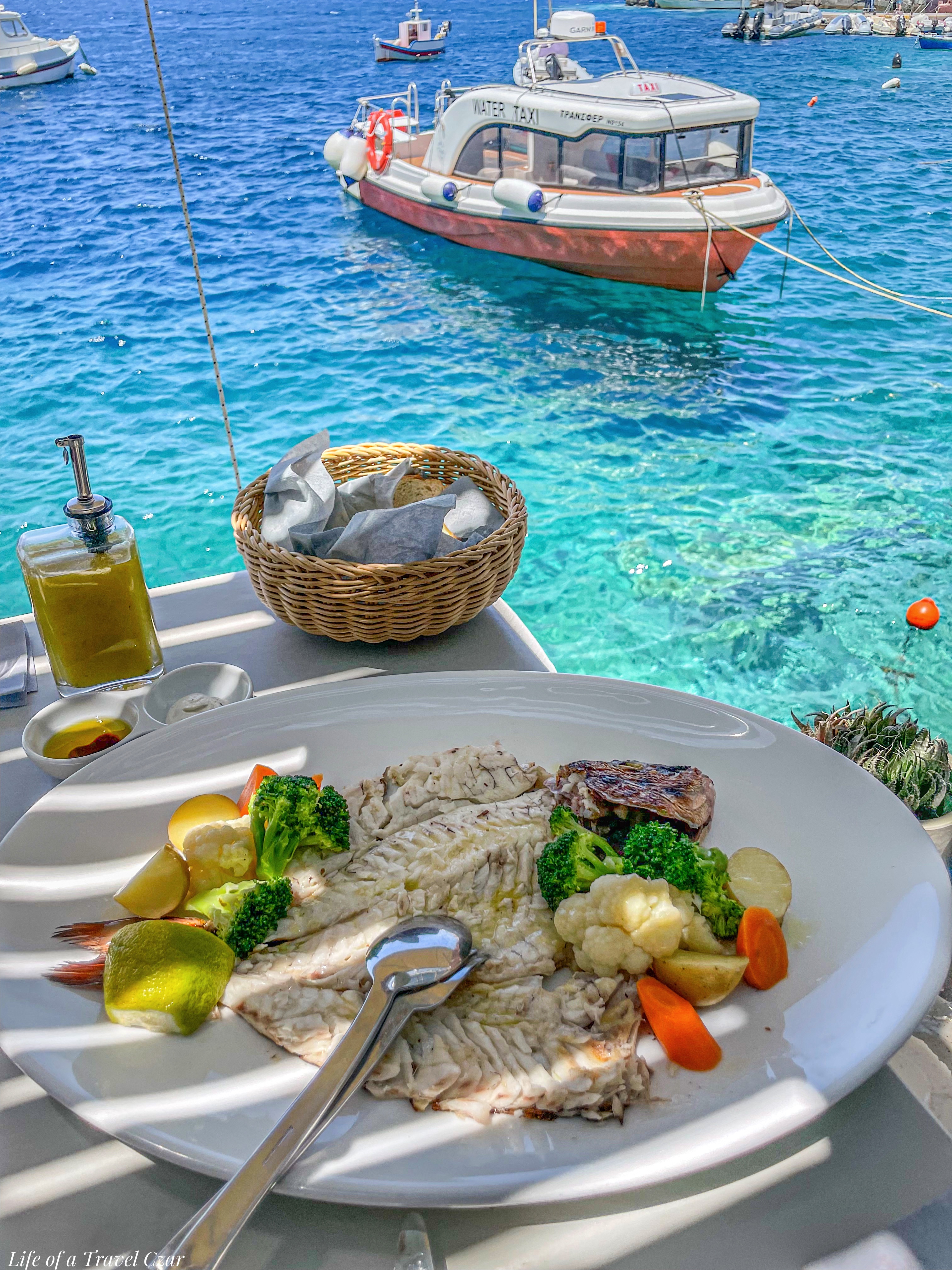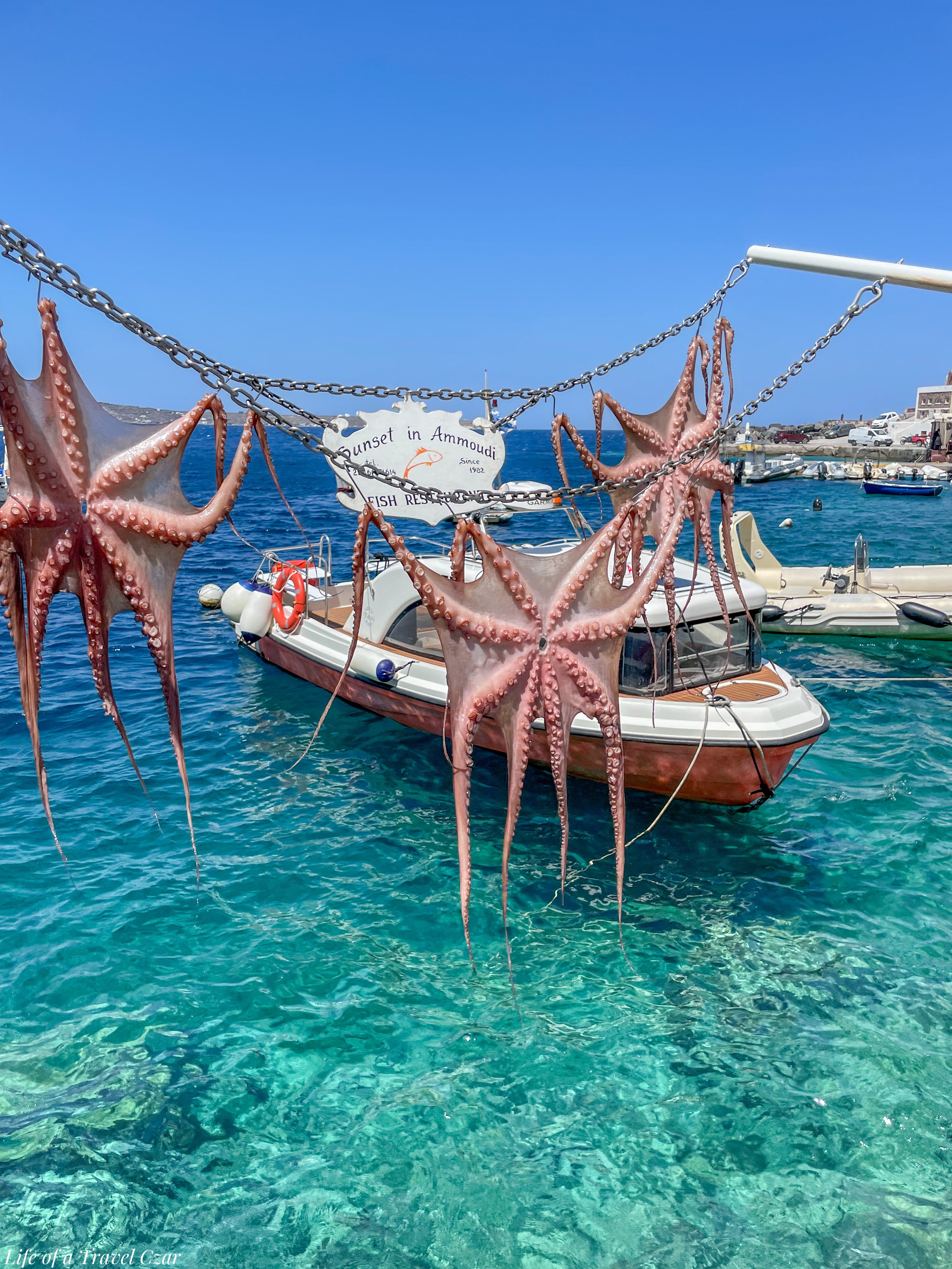 A lovely afternoon with lunch at Sunset Taverna in Ammoudi Bay with amazing seafood, rose and the waves of the bay lapping below us.
